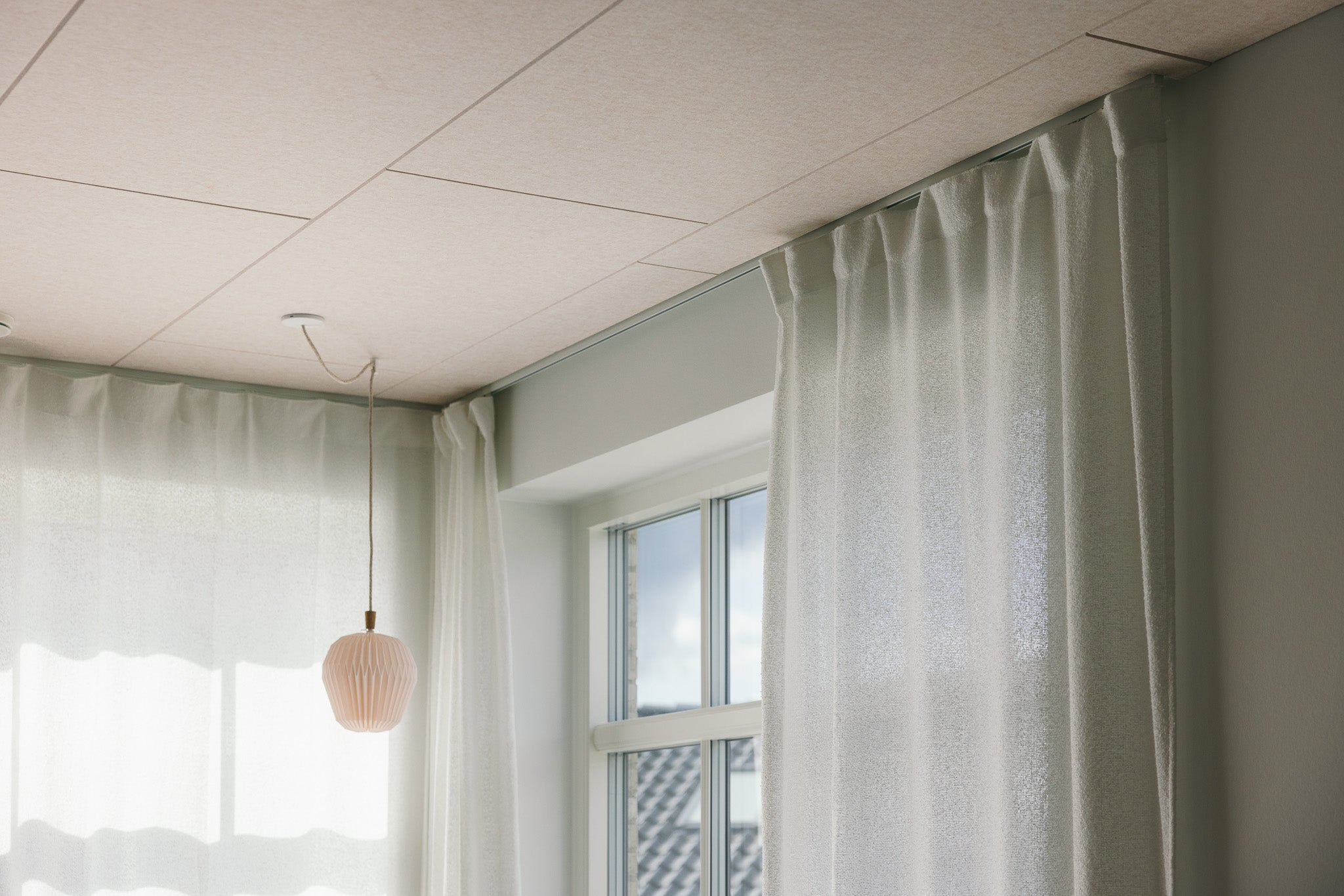 Verkauft werden Akustikpaneele in Kartons à 10 Stück (390 DKK/m²).